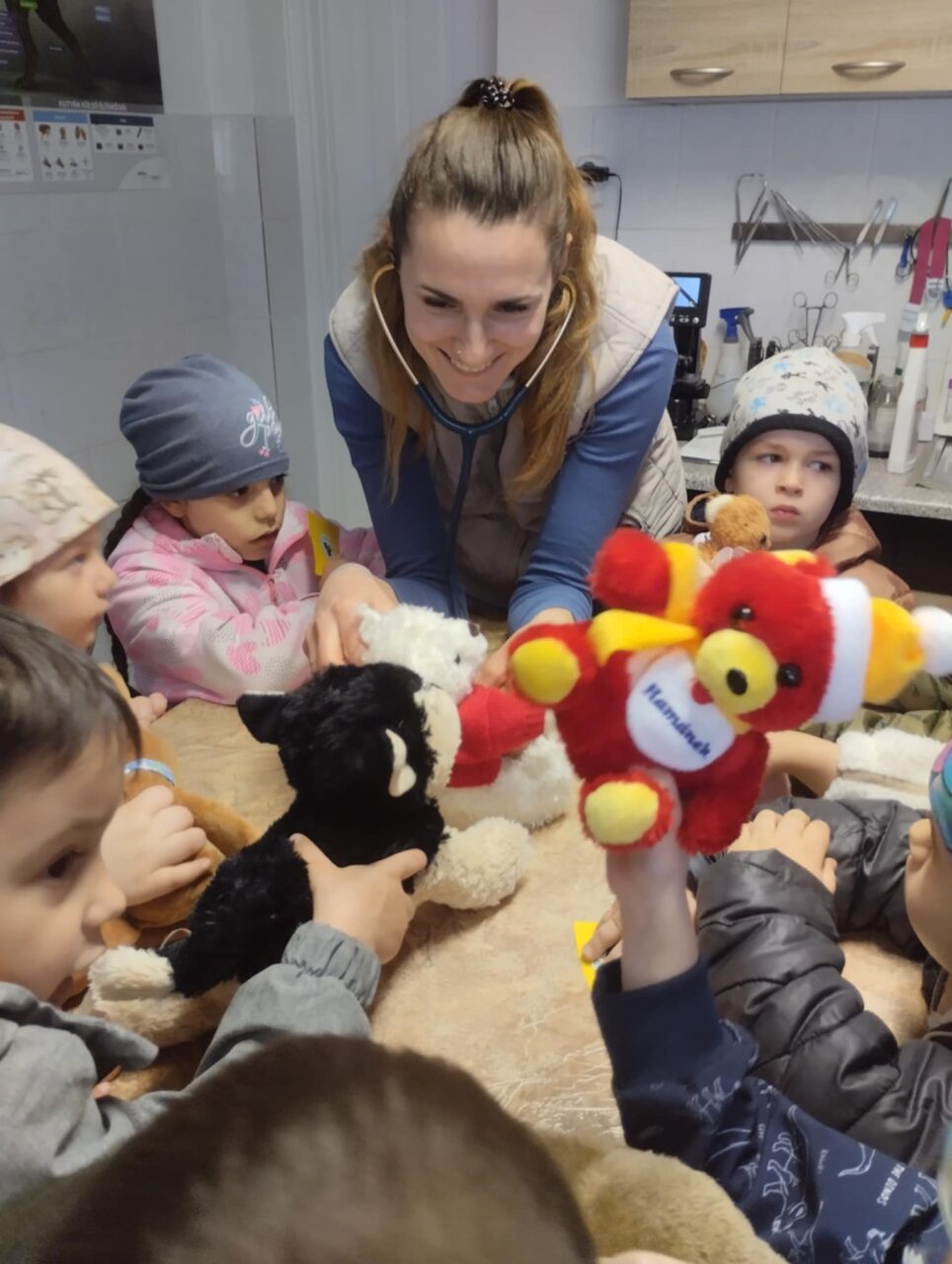 Bóta Vivien – Vivi óvó néni – Állatbarát Nagykövet – segítségével lehetőségük nyílt március végén elsétálni a helyi Állatorvosi rendelőbe, ahol nagyon barátságos, kedves doktornő várta a gyerekeket és az óvónőket és sokoldalú tapasztalatszerzést biztosított a témával kapcsolatban. Minden plüssállatot megvizsgáltak, amit kellett meg is gyógyítottak. Meghallgatták a szív dobbanását, bekötözték a törött mancsot, vért és hajszálat vizsgáltak mikroszkópon.