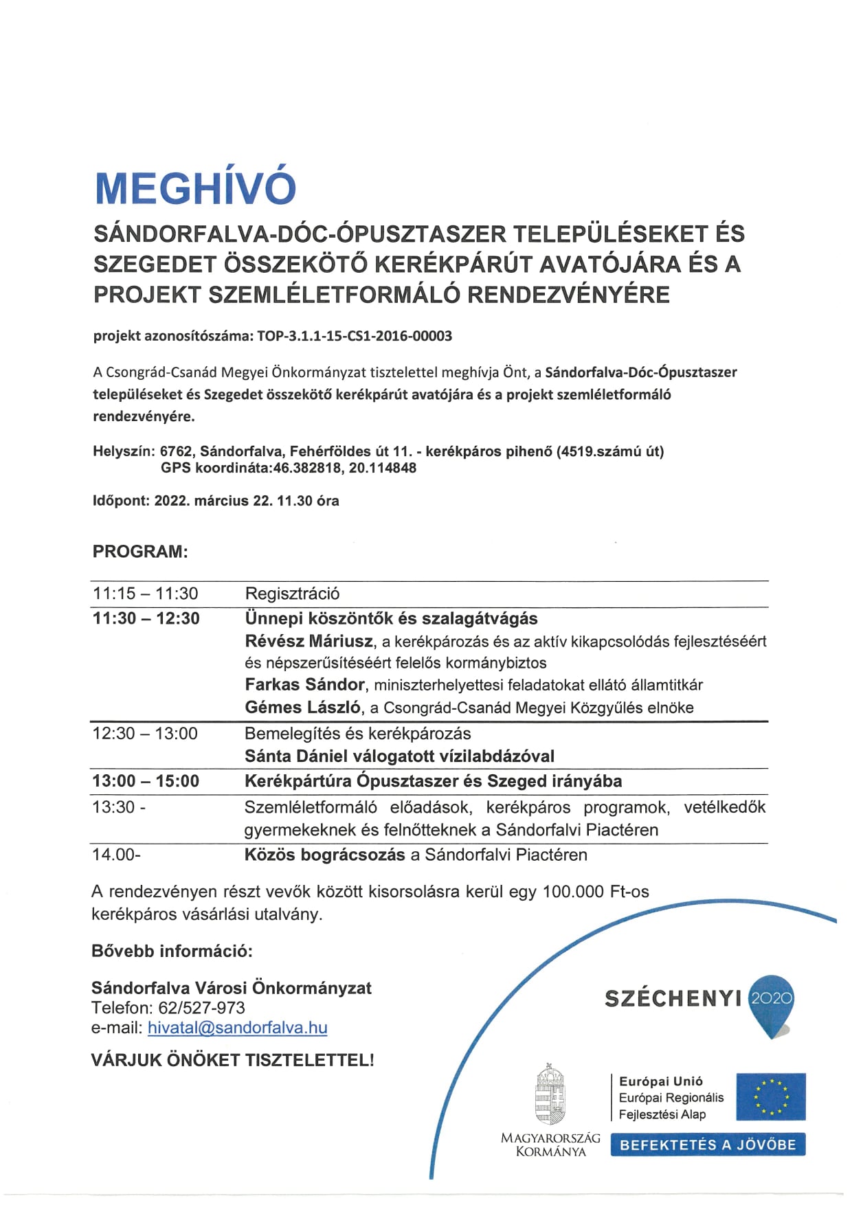 Sándorfalva-Dóc-Ópusztaszer településeket és Szegedet összekötő kerékpárút avatója