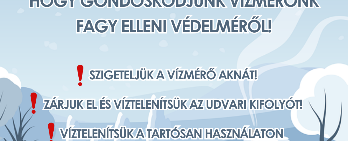 Az Alföldvíz Zrt. felhívja a felhasználói figyelmét arra, hogy a hóval és erős lehűléssel érkező téli idő miatt – amennyiben eddig nem tették meg – érdemes gondoskodni a vízmérők, valamint a vízvezetékek és a szerelvények teljesítéséről.