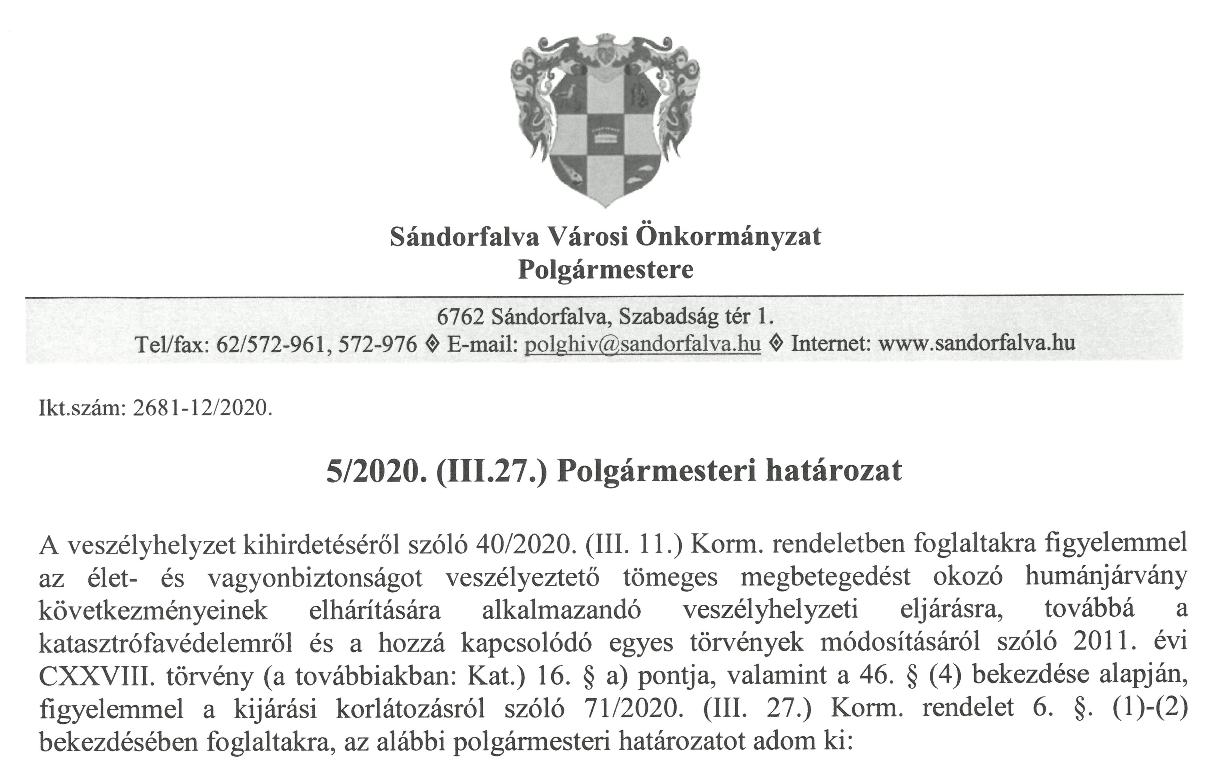Az SKK-ra vonatkozó 3/2020 (III. 27.) Polgármesteri határozat részleteit alább olvashatják