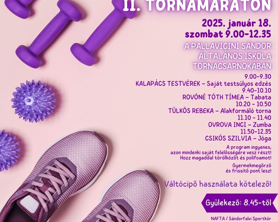 2025-01-10II. TORNAMARATON SándorfalvánII. TORNAMARATON A PALLAVICINI SÁNDOR ÁLTALÁNOS ISKOLA TORNACSARNOKÁBAN2025. JANUÁR 18. 9.00-12.35
