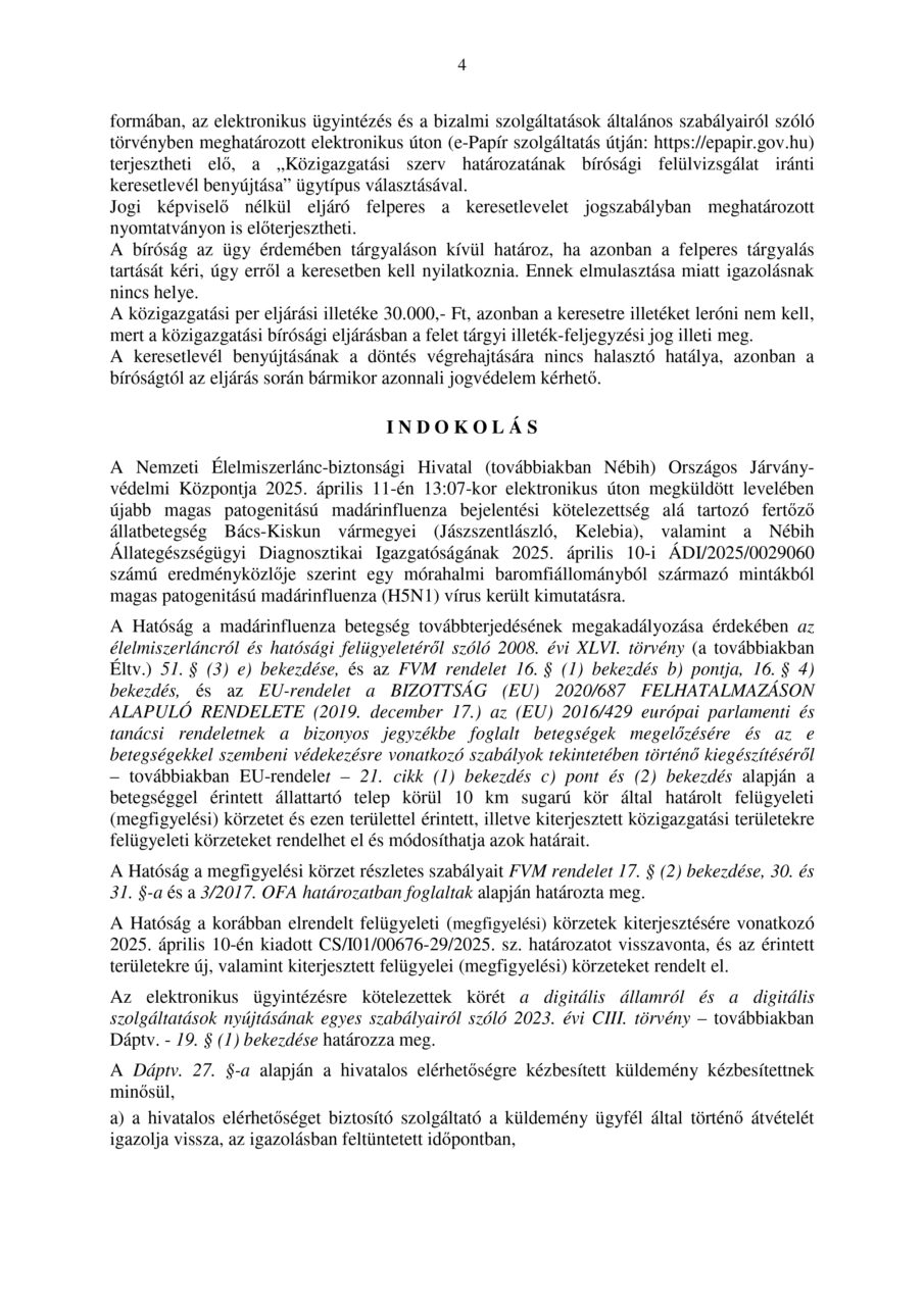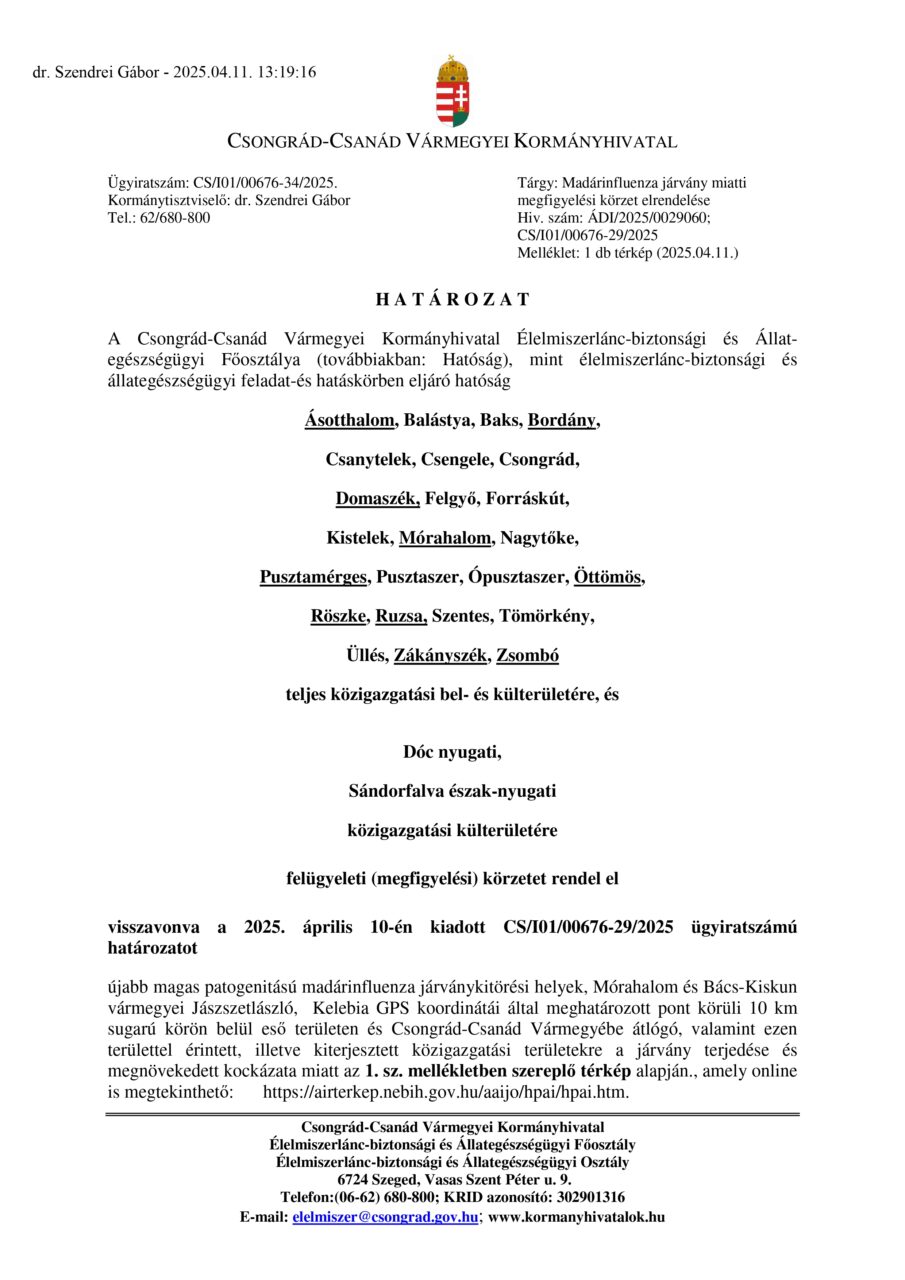Felügyeleti körzetre módosították a madárinfluenza miatt elrendelt megfigyelési körzetet