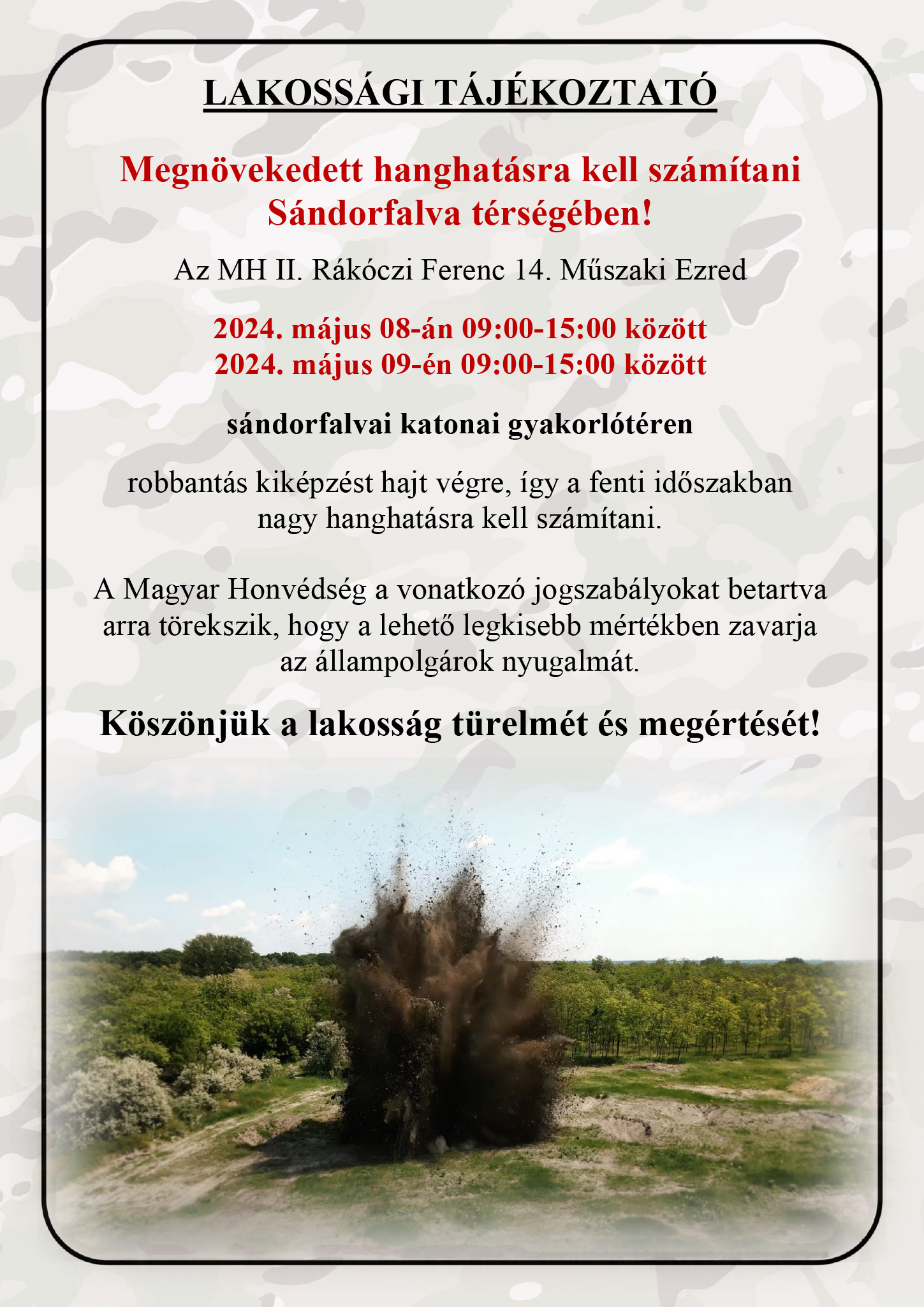 Május 8-án és 9-én gyakorlatozni fog a sereg2024-05-062024. április 25.2024-05-07 Vissza a hírekhez Utoljára frissítve 2024-05-07 Jegyzőkönyv Sándorfalva Városi Önkormányzat Képviselő-testületének 2024. április 25-én megtartott soros, nyílt üléséről Share on FacebookTweet