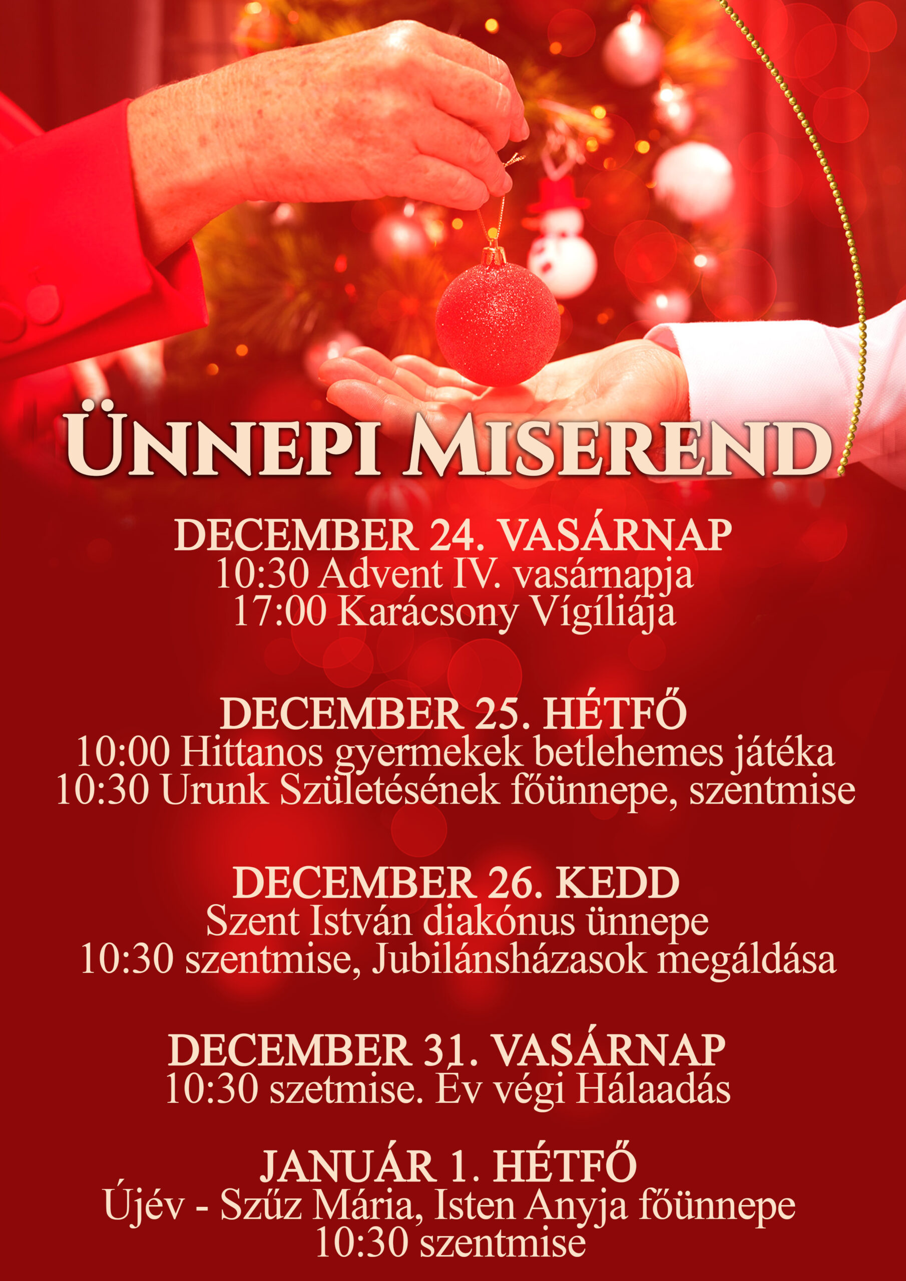 A Szűz Mária Szent Neve Templom ünnepi miserendje