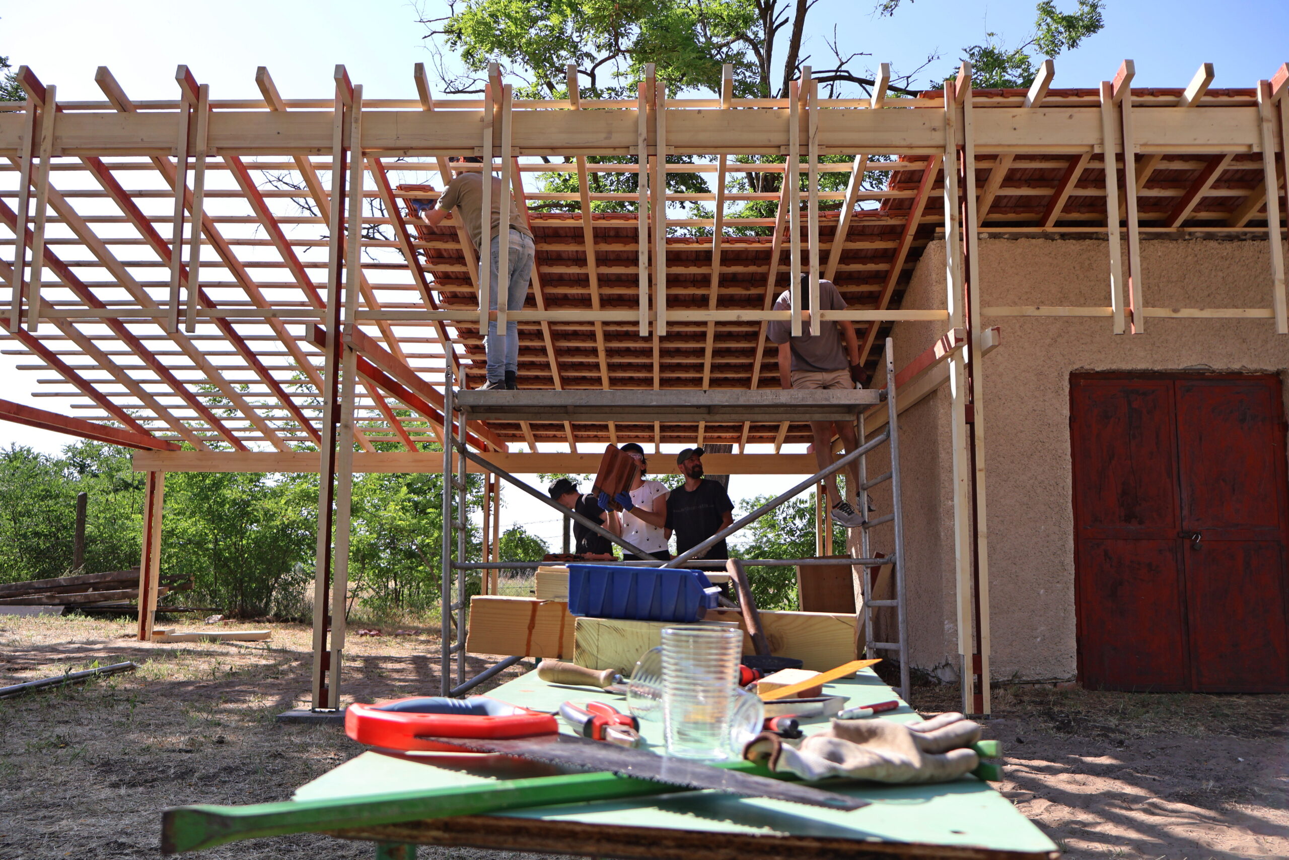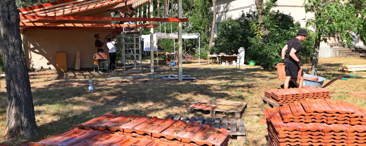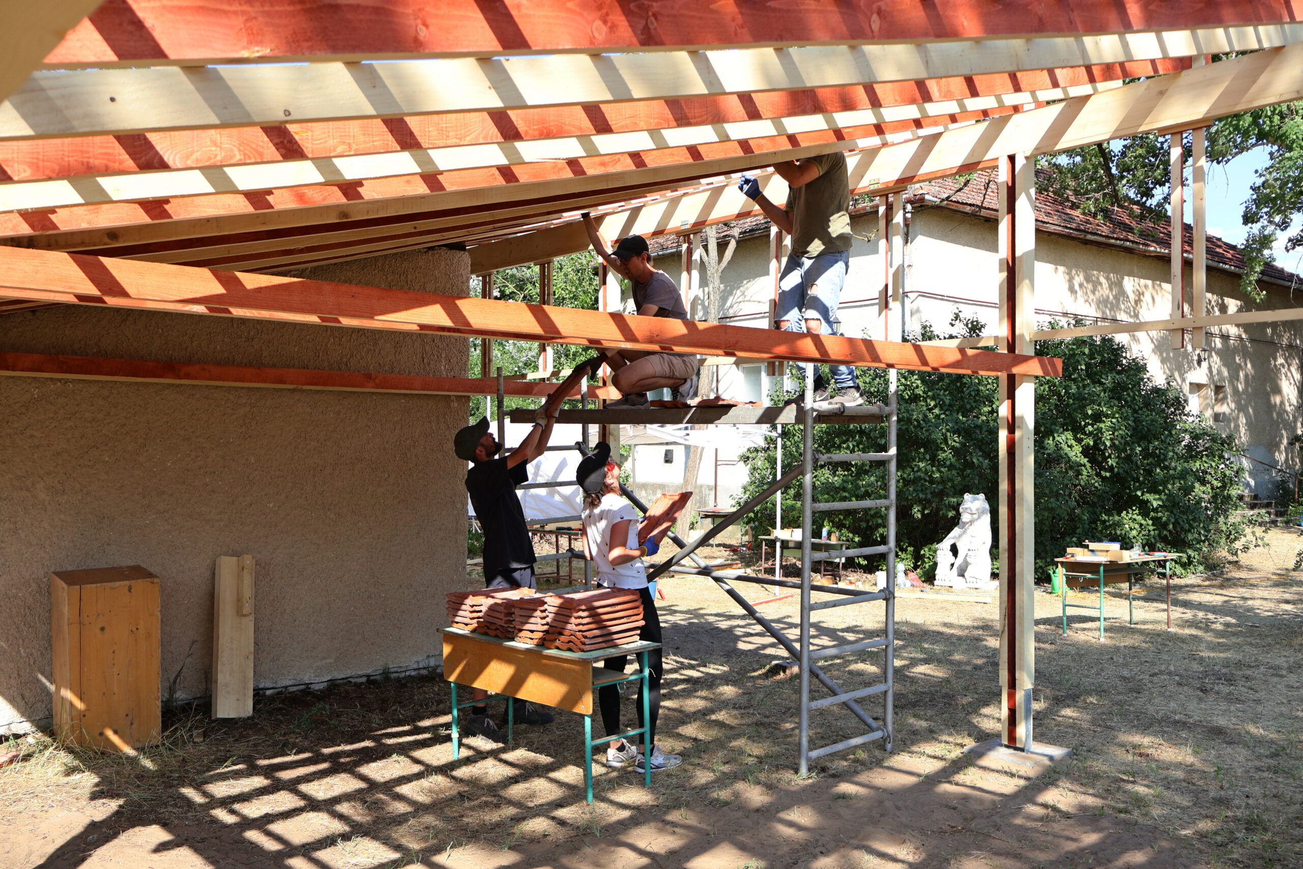 A jelenlegi projekt a kültéri alkotóterek létrehozására fókuszál. Egy meglévő kis raktárépületet fednek le egy tetővel, amelynek meghosszabítása benyúlik a kertbe, ezzel két-három, akár négy naptól és esőtől védett teret alakítva ki, ahol lehetőség nyílik szobrászkodni, festeni, írni vagy épp elmélkedni. A tervezési munka tavaly kezdődött, és a kivitelezés mindössze öt nap alatt zajlott le, egyfajta kísérletként, hogy felmérjék, mennyi idő alatt juthatnak el eddig az állapotig.