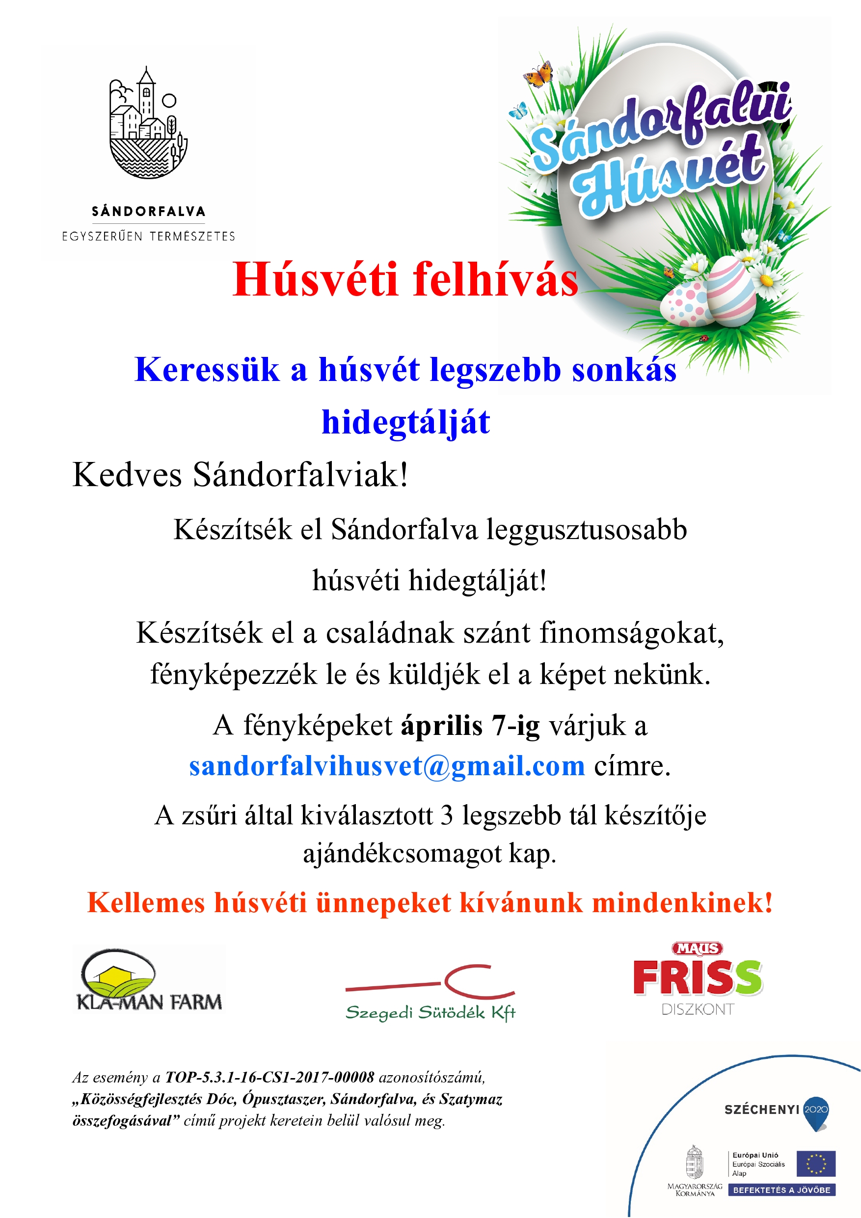 A koszorút Arany János, a Sándorfalvi Művelődési Ház és Könyvtár alkalmazottja helyezte el. A megemlékezésen Gajdosné Pataki Zsuzsanna, Sándorfalva polgármestere, Gombosné Zámbó Zsuzsanna, a Humán Bizottság tagja, és Magyar Károly, képviselő vettek részt.