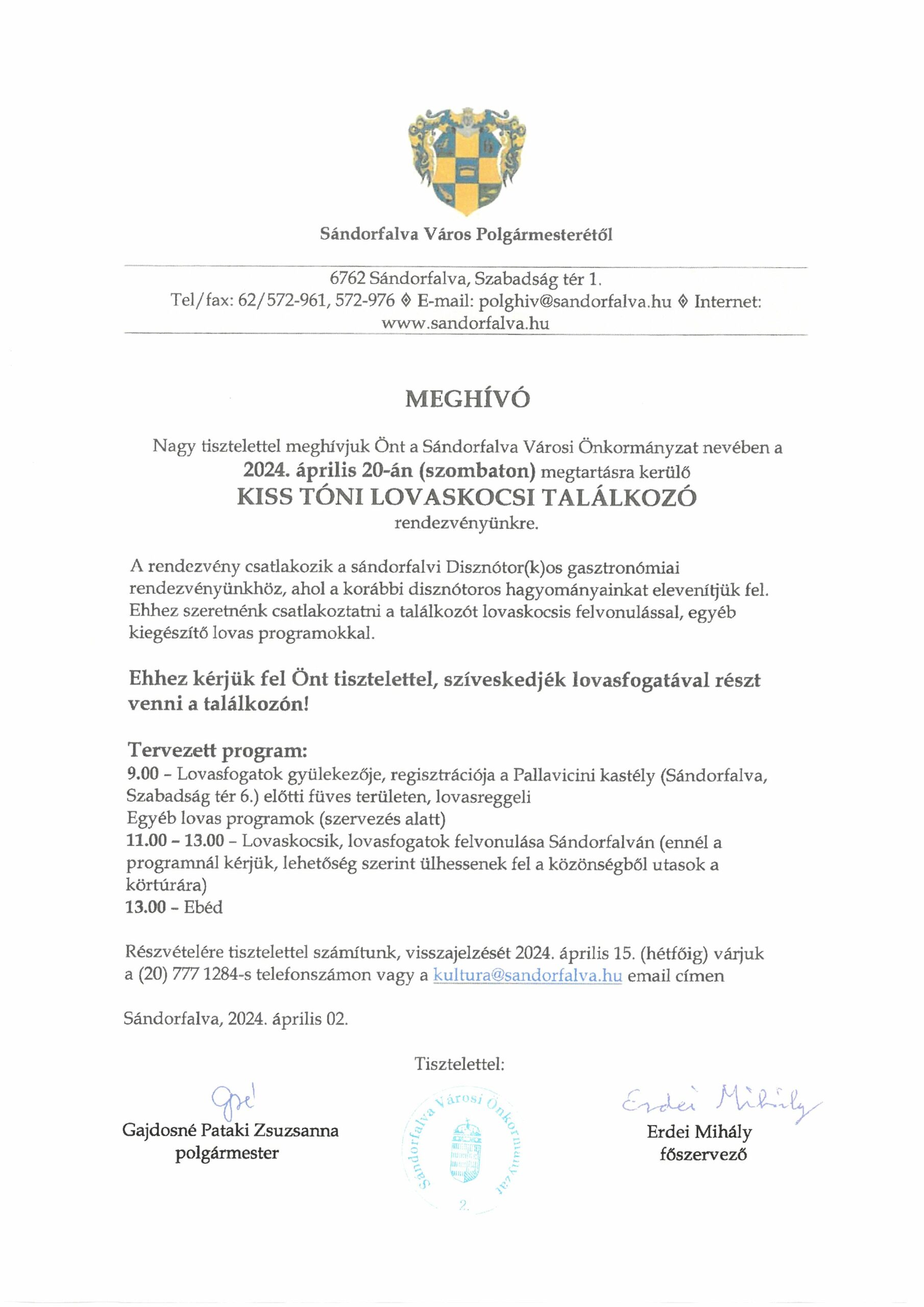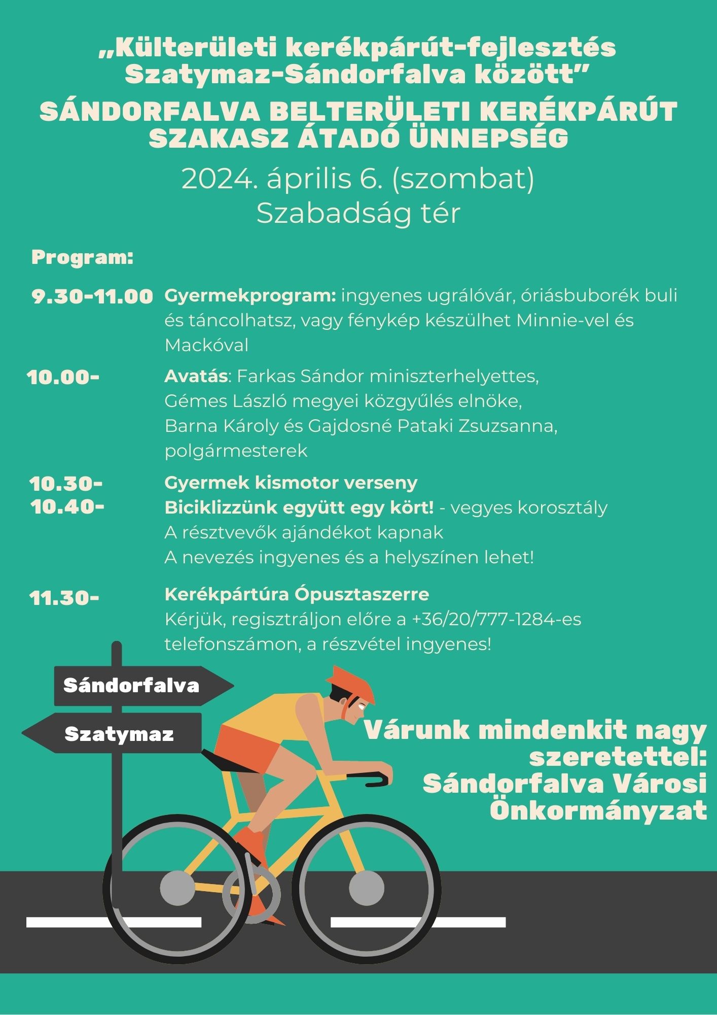 Várjuk a környékbeli lovasokat a rendezvényünkre!2024-04-04Kerékpárút átadó Sándorfalván2024-04-05 Vissza a hírekhez Utoljára frissítve 2024-04-04 Share on FacebookTweet