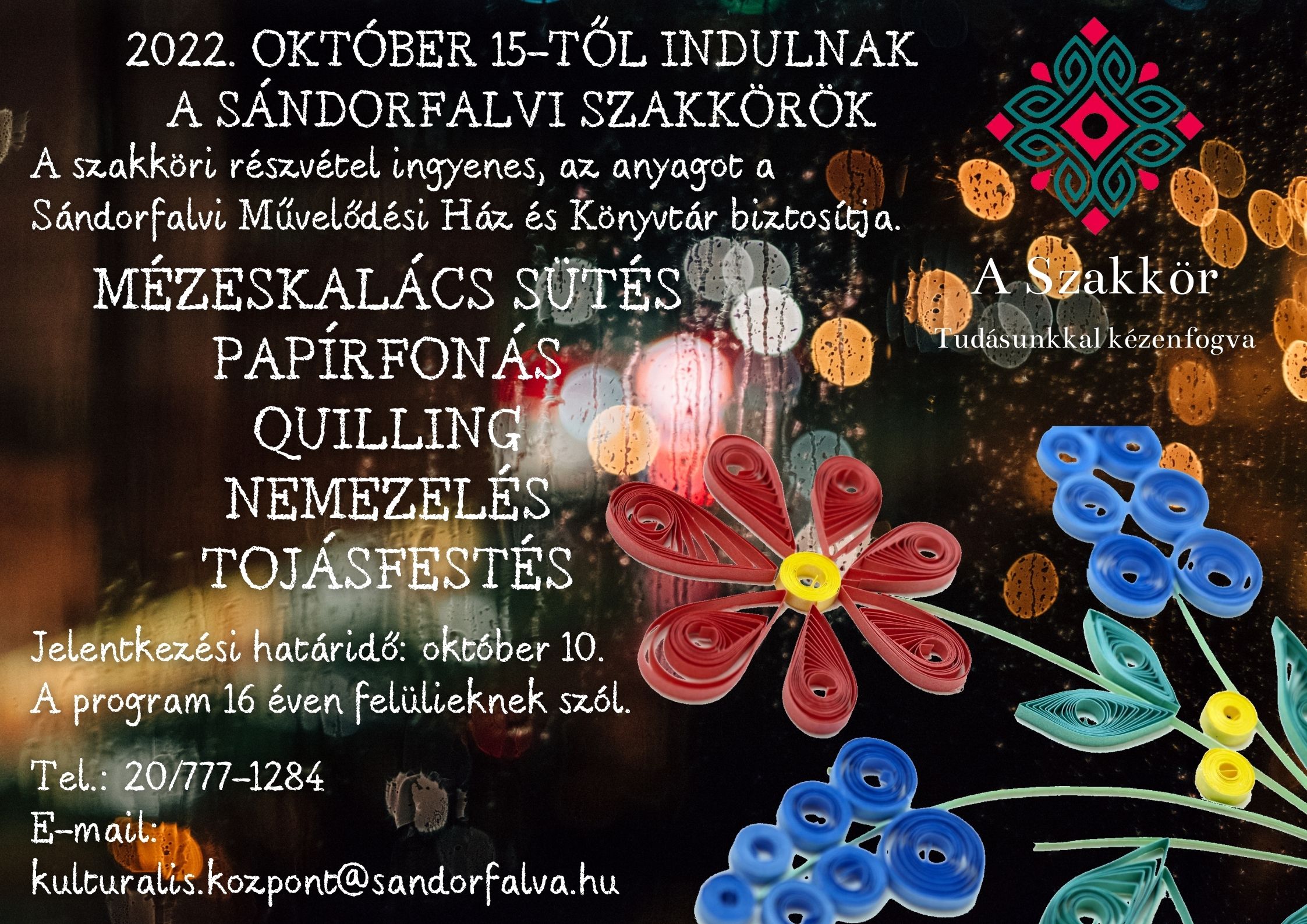 Október 15-től 16 éven felülieknek szóló szakkörök indulnak Sándorfalván2022-09-21Autómentes nap Sándorfalván2022-09-22 Vissza a hírekhez Utoljára frissítve 2022-09-22 Share on FacebookTweet