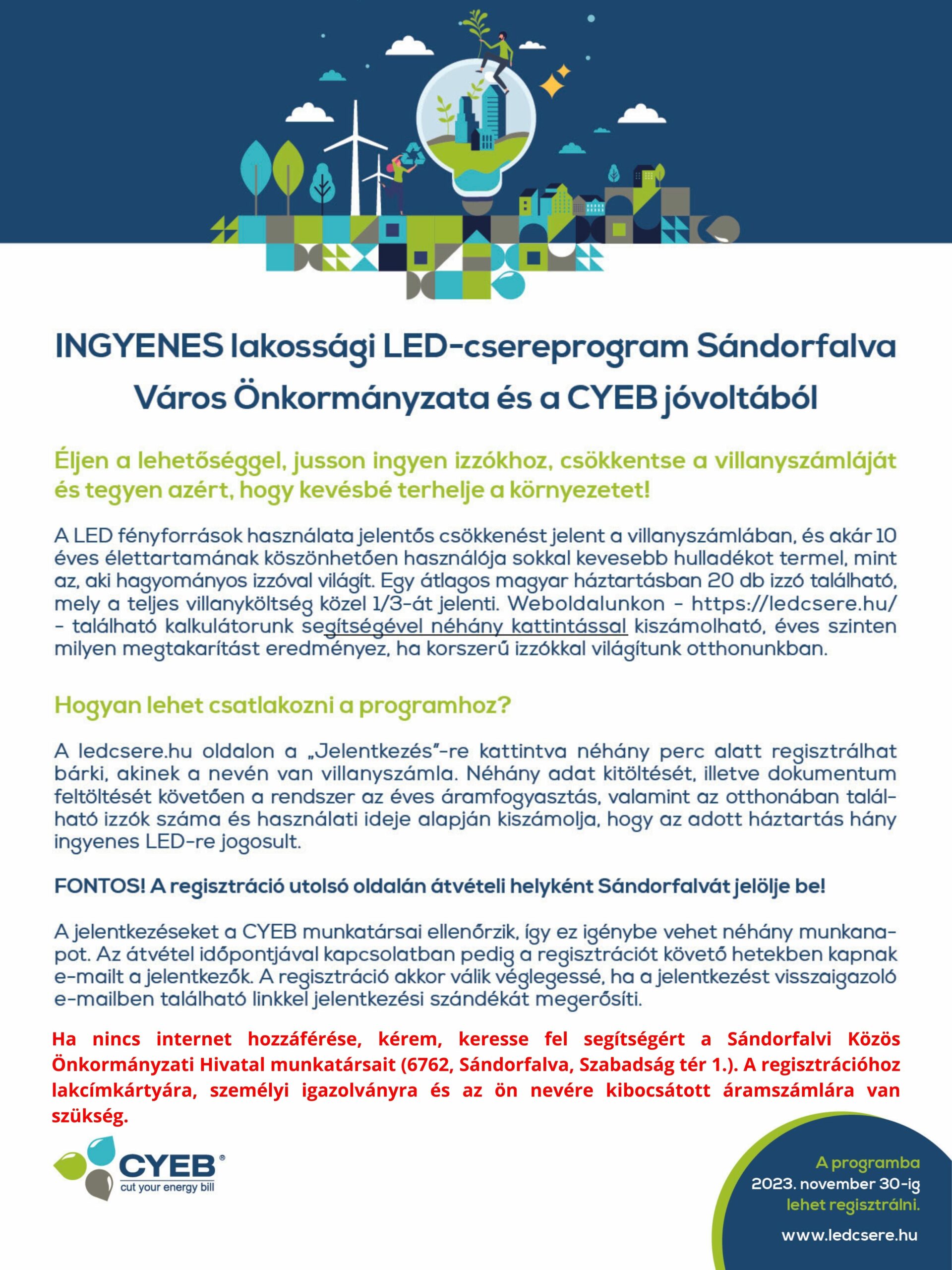 Ingyenes LED -izzócsere Sándorfalván2023-11-01Telente fontos a vitamindús táplálkozás2023-11-02 Vissza a hírekhez Utoljára frissítve 2023-11-01 Share on FacebookTweet