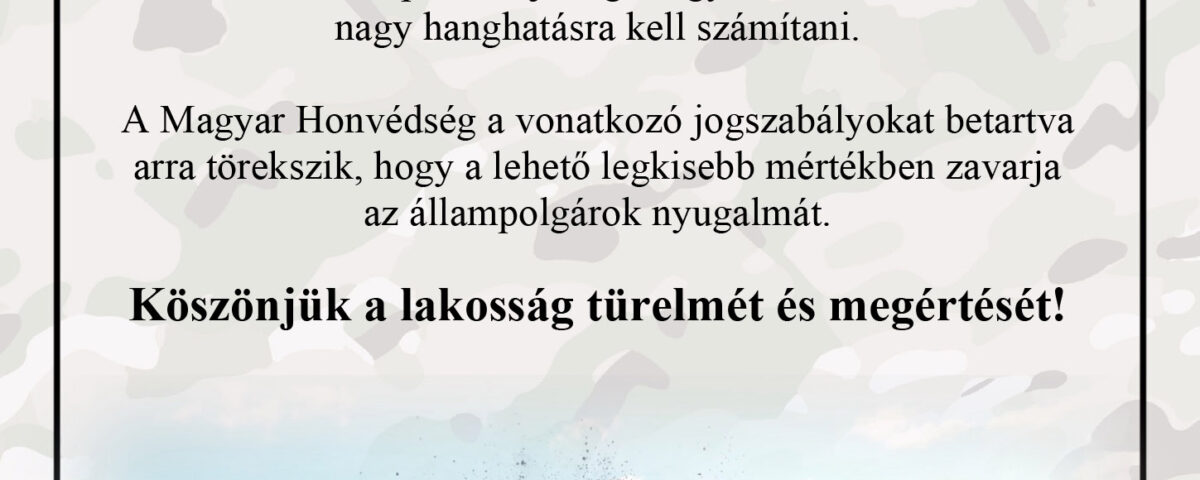 A Magyar Honvédség a vonatkozó jogszabályokat betartva arra törekszik, hogy a lehető legkisebb mértékben zavarja az állampolgárok nyugalmát.